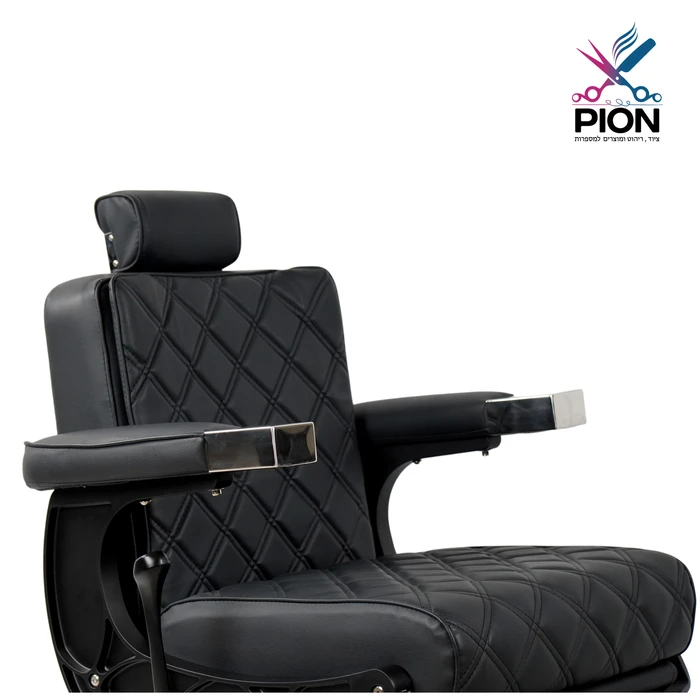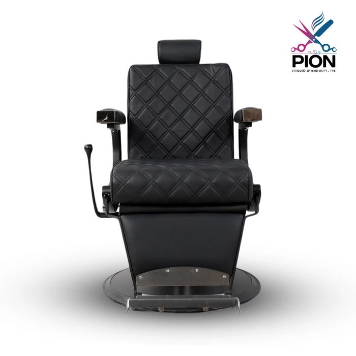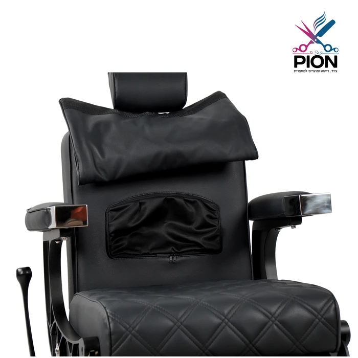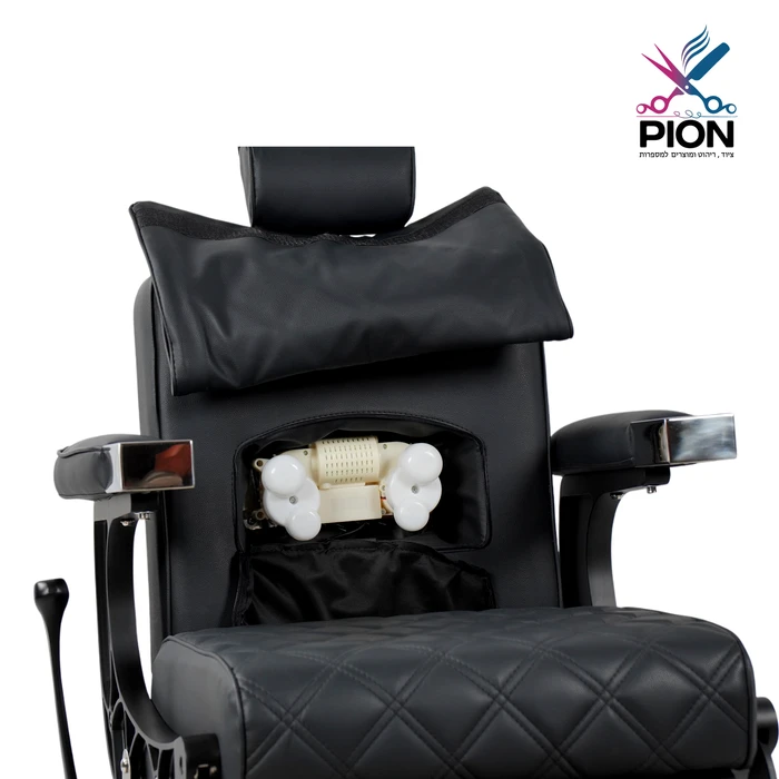 כיסא ברבר בעיצוב מודרני עם דוגמת תפירת יהלום, משענות יד אלגנטיות ובסיס הידראולי עמיד. בגב הכיסא – כיור חפיפה מתקפל עם שטח אחסון נגיש, לנוחות עבודה אופטימלית.
